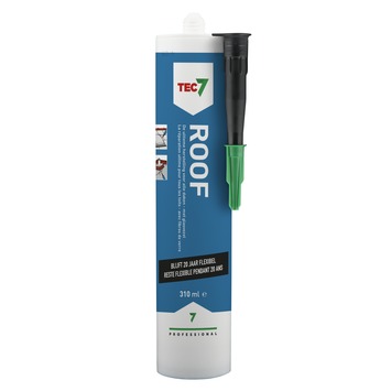Tec7 Roof (310 ml) is een vezelversterkte, bitumineuze herstellingspasta om je dak te herstellen, die tot 20 jaar na aanbrengen zacht en flexibel blijft. Ook geschikt op natte (maar niet op bevroren!) ondergronden. Zowel geschikt voor het herstellen van platte en hellende daken met bitumineuze dakbekleding als het afdichten van schoorstenen, dakgoten, dakranden, knelstrips, dakdoorvoeren, enzovoort. Tip: wie voor de producten van Tec7 kiest, kiest voor vereenvoudigde constructie, onderhoud en reparatie.