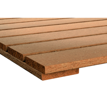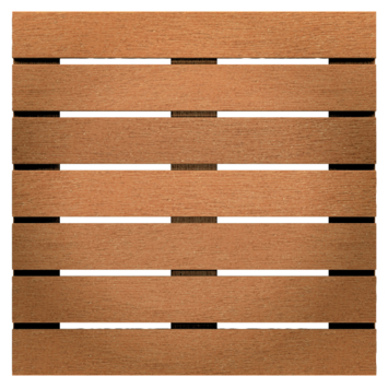 De vlondertegel hardhout bestaat uit 7 gladde latjes in plaats van geprofileerde latjes. Ondanks dat het lijkt dat de tegels gladder worden bij regen valt dit vaak mee, omdat in de profielen geprofileerde latjes zit vaak een ophoping van algen waardoor de tegel glad wordt. Met deze gladde latjes is hier geen sprake van. Onderhoud wel de hardhouten tegel goed door regelmatig met harde bezem deze af te vegen.