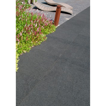 Je hebt meerdere soorten terrastegels in verschillende kleuren. Bij keramische tuintegels is het van belang om de tegels vast te verleggen. Een keramische tegel is nu eenmaal niet zo zwaar en dik als menig andere tegels. Daardoor vallen onnauwkeurigheden sneller op. Omdat deze tegel slechts 2 cm dik is, is het onverstandig om het terras af te trillen. De kans dat er dan breuken ontstaan, is aanwezig. Wat ook enorm belangrijk is bij een tegel van keramiek, is dat er voldoende voegruimte wordt aangehouden. Keramiek is namelijk een watervast materiaal. Wanneer de voegen te smal zijn, kan het regenwater niet voldoende weglopen en blijft het terras er vol mee staan. De keramische tegel bestaat in diverse natuurlijke prints en heeft een antislip afwerking. Dat maakt deze Terrastegel Keramisch Solid Stone Diamond Zwart 80x80 cm - Per Tegel / 0,64 m2 zeer geschikt voor buitengebruik. Het is een krasvaste tegel die geen vocht opneemt. Het voordeel daarvan is dat vuil niet in de tegel trekt, maar er netjes vanaf te spoelen is. Pas wel op met bijtende stoffen en hogedrukreinigers. Beide kunnen namelijk de beschermlaag van de tegel beschadigen. Mocht je tijdens het leggen van de tegels moeten zagen om uit te komen, doe dat dan niet boven de nieuwe tegels. De cementresten die tijdens het zagen op de grond (net gelegde tegels) vallen, zijn lastig te verwijderen. Spoel de gezaagde stukken ook altijd goed schoon voordat je deze verwerkt.