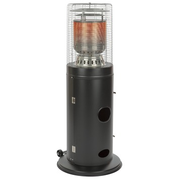 Een terrasverwarmer op wielen? Kies voor deze terrasverwarmer Lounge met een hoogte van 135 centimeter en een vermogen van 10 kW. Verkrijgbaar in verschillende kleuren, waaronder eigentijds gelakt staal in de kleur zwart. Inclusief wielen en 'omvalbeveiliging'.
