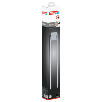 De tesa® Ekkro handdoekhouder met twee armen biedt een slimme oplossing om je handdoeken praktisch op te hangen. Dankzij de hoogglans verchroomde afwerking ziet deze houder er niet alleen stijlvol uit, maar is hij ook goed bestand tegen vochtige omgevingen. Met de tesa® Power.Kit technologie monteer je de handdoekhouder eenvoudig aan de muur zonder boren. Plak de adapters, vul ze met de speciale lijm en laat het geheel uitharden. De houder is geschikt voor verschillende oppervlakken zoals tegels, glas en hout, maar niet voor behang of stucwerk. En mocht je de houder later willen verplaatsen, dan verwijder je deze eenvoudig zonder lijmresten achter te laten. Zo blijft je muur mooi intact.