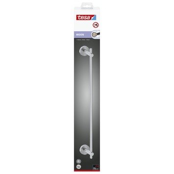 De tesa® Moon handdoekhouder is een echte eyecatcher in je badkamer of keuken. Dankzij de RVS afwerking met anti-vingerafdruk behandeling blijft de houder er altijd netjes uitzien, zelfs na veelvuldig gebruik. Je bevestigt deze handdoekhouder eenvoudig zonder boren, wat ideaal is voor wie niet wil klussen met gereedschap. Met de unieke tesa® Power.Kit technologie plak je de adapters op de muur, vul je deze met lijm en laat je het 12 uur uitharden. Daarna schroef je de houder simpelweg op de adapters. De verpakking bevat alles wat je nodig hebt, van de handdoekhouder tot de bevestigingsset, zodat je direct aan de slag kunt. Het mooie is dat je de houder weer kunt verwijderen zonder lijmresten achter te laten, en je kunt hem opnieuw bevestigen met de aparte adapterset BK20-2, die ook verkrijgbaar is. Deze handdoekhouder is geschikt voor diverse oppervlakken zoals tegels, metaal en glas, maar niet voor behang of stucwerk.