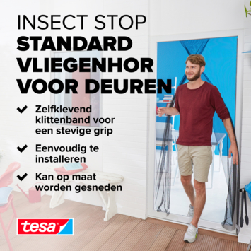 tesa® Insect Stop Klittenband STANDARD voor deuren is een voordelige oplossing om je huis vrij te houden van vervelende vliegen, spinnen, muggen en ander ongedierte. Het werkt als natuurlijke bescherming tegen muggen en kan gemakkelijk aan deurkozijnen worden bevestigd. Het is zelfs nog eenvoudiger om weer te verwijderen. Je hoeft geen gaten te boren in de kozijnen van je terras- of balkondeur en bevestigt de hor gewoon met de meegeleverde, zelfklevende klittenbandtape. Trek de tape gewoon eraf als je het product wilt verwijderen. De hor bestaat uit twee delen en kan op maat worden geknipt.