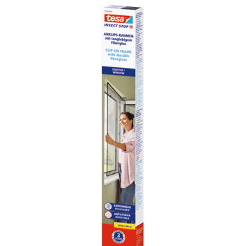 We introduceren nu het tesa® Insect Stop clip-on frame: een duurzaam muggengaas op maat. Om het te installeren meet je het raam op, je snijdt het frame op maat en klemt het insectengaas vast. Het overtollige gaas knip je weg, je plaatst de clips rond het raamkozijn en klemt het gewoon vast! Het clip-on frame is ontworpen voor gebruiksgemak en kan makkelijk worden verwijderd tijdens de koelere maanden of ramen te zemen. In tegenstelling tot insectengaas met klittenbandsystemen is het beter bestand tegen slijtage en kan nadien makkelijk opnieuw worden bevestigd.