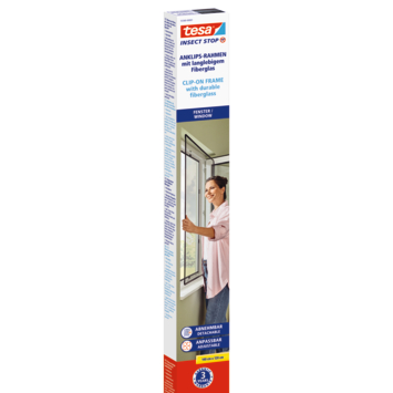 We introduceren nu het tesa® Insect Stop clip-on frame: een duurzaam muggengaas op maat. Om het te installeren meet je het raam op, je snijdt het frame op maat en klemt het insectengaas vast. Het overtollige gaas knip je weg, je plaatst de clips rond het raamkozijn en klemt het gewoon vast! Het clip-on frame is ontworpen voor gebruiksgemak en kan makkelijk worden verwijderd tijdens de koelere maanden of ramen te zemen. In tegenstelling tot insectengaas met klittenbandsystemen is het beter bestand tegen slijtage en kan nadien makkelijk opnieuw worden bevestigd.