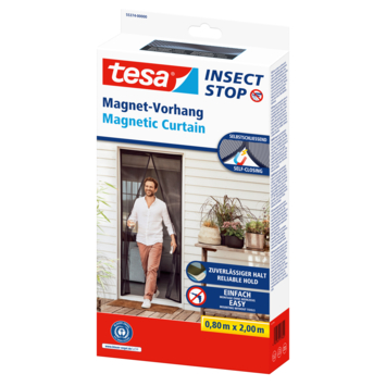 Bescherming tegen insecten was zelden zo eenvoudig. Om te voorkomen dat terras- en balkondeuren een toegangspoort voor muggen worden, heeft tesa dit zelfsluitende magnetische gordijn ontwikkeld. De 30 magneten die in het gordijn zijn genaaid, zijn handig: Het deurgordijn gaat moeiteloos open en dicht. De magnetische functie is vooral handig in huishoudens met kinderen of als u een huisdier hebt. De brede zelfklevende tape kan op de gewenste maat worden geknipt. Zelfs onervaren gebruikers zijn in staat om het gordijn eenvoudig en snel te installeren zonder te boren.