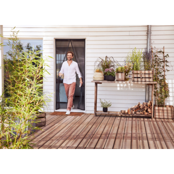 Bescherming tegen insecten was zelden zo eenvoudig. Om te voorkomen dat terras- en balkondeuren een toegangspoort voor muggen worden, heeft tesa dit zelfsluitende magnetische gordijn ontwikkeld. De 30 magneten die in het gordijn zijn genaaid, zijn handig: Het deurgordijn gaat moeiteloos open en dicht. De magnetische functie is vooral handig in huishoudens met kinderen of als u een huisdier hebt. De brede zelfklevende tape kan op de gewenste maat worden geknipt. Zelfs onervaren gebruikers zijn in staat om het gordijn eenvoudig en snel te installeren zonder te boren.