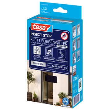 De tesa Insect Stop vliegendeur met klittenband Comfort 65 x 220 cm antraciet 2 stuks is een praktische oplossing voor deuren die je eenvoudig plaatst zonder gereedschap. Het gaas past op de meeste terras- en balkondeuren en houdt muggen en andere insecten buiten terwijl je de deur open kunt laten voor frisse lucht. Dankzij het speciale klittenbandsysteem monteer je de vliegendeur snel en stevig met de meegeleverde druktool.
