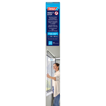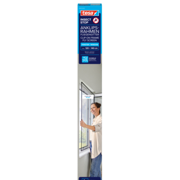 Het tesa Insect Stop Clip-on frame 120 x 140 cm antraciet is een vliegenraam voor PVC-ramen dat insecten buiten houdt terwijl je frisse lucht binnenlaat. Het frame kan eenvoudig op maat worden gemaakt door het gaas en de kunststof strips te knippen en het frame vervolgens in elkaar te zetten. De zelfklevende houdclips plak je op het raamkozijn, waarna het frame eenvoudig vastgeklikt kan worden en weer los te maken is voor bijvoorbeeld schoonmaken of tijdens de koelere maanden.