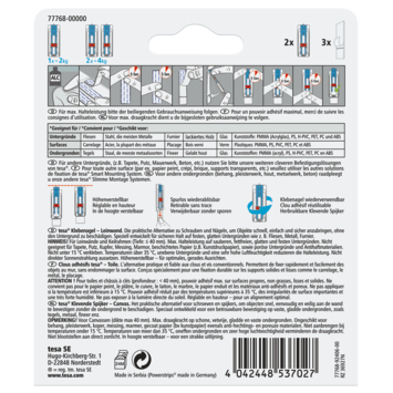 Tesa klevende spijker canvas voor tegels en metaal verstelbaar wit 2 kg 2 stuks