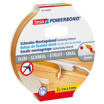 Tesa Powerbond montagetape smal 5 m x 9 mm (2 stuks)