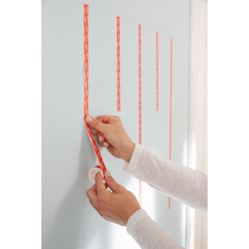 Gordijnrails konden niet geplaatst worden doordat er isolatie in de dagkant van de ramen zat. Met Tesa Powerbond Ultra Strong kon de bevestiging toch gebeuren.