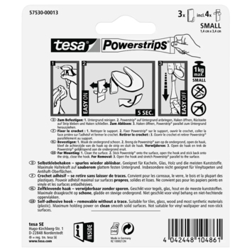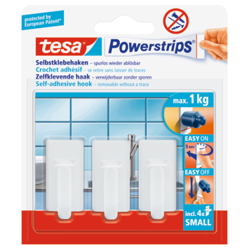 Met de waterdichte tesa Powerstrips rechthoekige haken (3 stuks) uit kunststof in de kleur wit kan je zonder boren of schroeven allerlei badkameraccessoires ophangen. Even eenvoudig weer te verwijderen.