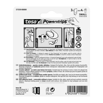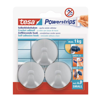 Met de waterdichte tesa Powerstrips ronde mini-haken (3 stuks) uit kunststof in de kleur chroom kan je zonder boren of schroeven allerlei badkameraccessoires ophangen. Even eenvoudig weer te verwijderen.