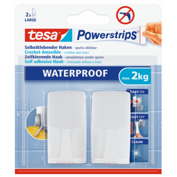 Met de waterdichte tesa Powerstrips haak uit kunststof in de kleur wit kan je zonder boren of schroeven allerlei badkameraccessoires ophangen. Even eenvoudig weer te verwijderen.