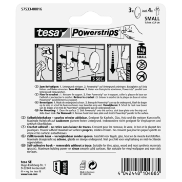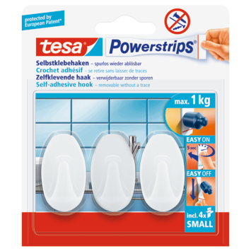 Met de waterdichte tesa Powerstrips ovalen haken (3 stuks) uit kunststof in de kleur wit kan je zonder boren of schroeven allerlei badkameraccessoires ophangen. Even eenvoudig weer te verwijderen.
