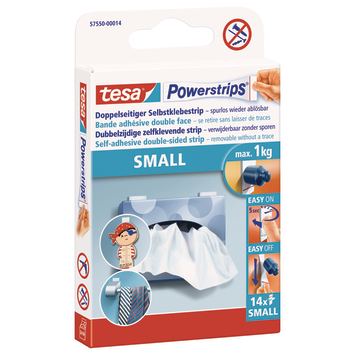 Tesa heeft een tape voor elke klus. Gebruik de Tesa Powerstrip mini (14 stuks) voor het bevestigen van lichte objecten. Snel en spoorloos verwijderbaar.