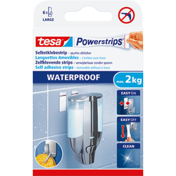 Met de waterdichte Tesa Powerstrips (6 stuks) kan je zonder boren of schroeven allerlei badkameraccessoires ophangen. Van zeepdispensers tot bekerhouders en handdoekhaken. Handig in je hele badkamer, zelfs onder de douche. Even eenvoudig weer te verwijderen.