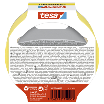 De Tesa Professional Indoor schilderstape geel 25 mm x 25 m is een afplaktape die je binnenshuis gebruikt en die geschikt is voor gladde ondergronden. De tape is gemaakt van papier met een acryllijmlaag waardoor hij netjes hecht en geschikt is voor precies schilderwerk. Je kan de afplaktape eenvoudig met de hand afscheuren en na gebruik weer verwijderen zonder lijmresten. Omdat de tape tot vijf maanden na het aanbrengen loskomt zonder sporen, heb je genoeg tijd om ook grotere schilderprojecten rustig af te werken.