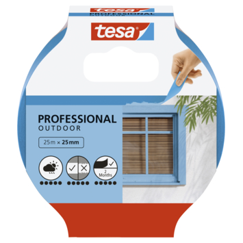 De Tesa Professional Outdoor schilderstape blauw 25 mm x 25 m is een afplaktape die je buitenshuis gebruikt en die geschikt is voor gladde en licht oneffen ondergronden. De afplaktape is gemaakt van papier met een acryllijmlaag waardoor hij stevig hecht en netjes resultaat geeft. Omdat de tape UV- en weersbestendig is, blijft hij ook buiten goed zitten. Je kan de tape met de hand afscheuren en tot acht weken na gebruik verwijderen zonder lijmresten achter te laten. De tape is oplosmiddelvrij, grotendeels gemaakt van hernieuwbare materialen en bruikbaar met alle soorten verf.