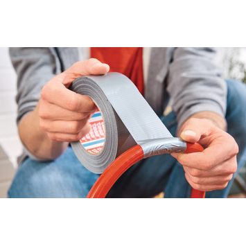 Tesa Extra Power Universal reparatietape 50 m x 50 mm zilver is een sterke klustape die je zowel binnen als buiten kunt gebruiken op gladde en ruwe ondergronden. De tape is gemaakt van kunststof met een drager van PET, een stevig materiaal dat moeilijk scheurt en lang meegaat. Dankzij de UV-bestendigheid blijft de tape goed zitten, ook als hij veel in de zon ligt. Je gebruikt hem bij allerlei klussen zoals repareren, bundelen of tijdelijk vastmaken van materialen.