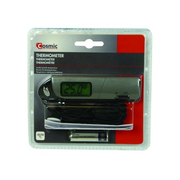 Op de Cosmic autothermometer weersbestendig lees je snel en eenvoudig de temperatuur af. De autothermometer is geschikt voor bevestiging binnen en buiten jouw auto. De thermometer is voorzien van 3m klittenband waardoor je deze makkelijk kunt bevestigen. De Cosmic autothermometer weersbestendig heeft een digitaal display waarop je de temperatuur makkelijk kunt aflezen. De thermometer heeft een temperatuurbereik van -50°C tot 50°C en een sensor met 3m kabel. De autothermometer is weersbestendig en werkt op 1 AAA/LR03-batterij die meegeleverd wordt. Kortom, zorg dat je op de hoogte blijft van de actuele temperatuur met de Cosmic autothermometer weerbestendig.