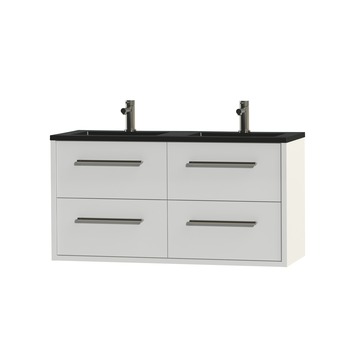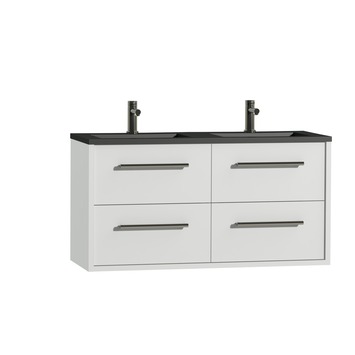 Het Tiger Boston badkamermeubel is krachtig en elegant tegelijk en de mooie ronde greep ligt aangenaam in de hand. De 4 lades bieden voldoende ruimte om alle badkamerartikelen overzichtelijk in op te bergen. Daarnaast zijn ze uitgerust met hoogwaardige 'soft close' geleiders waardoor ze geruisloos sluiten. De witte kleurgeeft het meubel een tijdloze uitstraling. De strakke, mat zwarte polybeton wastafel met imitatie natuursteen look maakt deze set compleet.