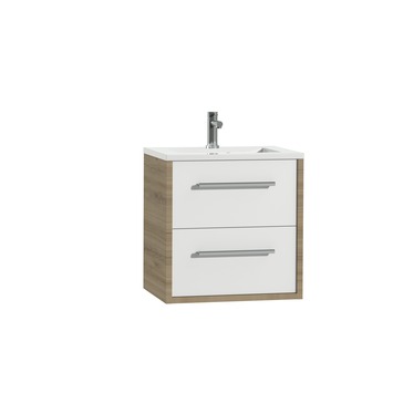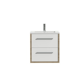 Tiger Badkamermeubel Boston 60 cm Chalet Eik met Polybeton Wastafel Wit en Ronde Grepen Chroom