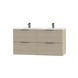 Door het strakke en tijdloze design past dit Tiger badkamermeubel Studio in iedere badkamer. Deze wastafelonderkast heeft 2 ruime lades om alle badkamerspullen overzichtelijk in op te bergen. De lades zijn uitgerust met hoogwaardige 'soft close' geleiders waardoor ze geruisloos sluiten. De warme houttint geeft een sfeervol karakter aan het meubel. Daarnaast krijgt het meubel, door de voelbare houtnerf, een mooie natuurlijke uitstraling. De mooie, wit matte polybeton wastafel met ovale waskommen en rvs grepen maken deze set compleet.