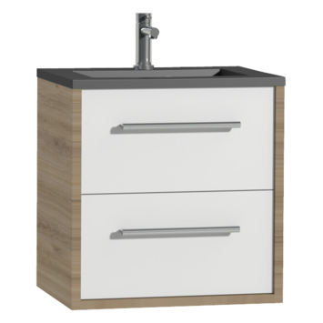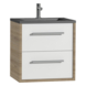 Het Tiger Boston badkamermeubel is krachtig en elegant tegelijk en de mooie ronde greep ligt aangenaam in de hand. De 2 lades bieden voldoende ruimte om alle badkamerartikelen overzichtelijk in op te bergen. Daarnaast zijn ze uitgerust met hoogwaardige 'soft close' geleiders waardoor ze geruisloos sluiten. De warme houttint geeft een sfeervol karakter aan het meubel. Daarnaast krijgt het meubel, door de voelbare houtnerf, een mooie natuurlijke uitstraling. De strakke, mat zwarte polybeton wastafel met imitatie natuursteen look maakt deze set compleet.
