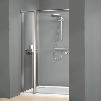 De Tiger Boston nisdeur RVS helder glas 120cm breed is een combinatie van roestvrij staal en glas. Deze nisdeur is ook verkrijgbaar in chroom en andere breedtes (90 of 100 cm). Je kunt deze deur bijvoorbeeld tussen twee deuren plaatsen, dit kan op de douchebak of direct op de vloer. Bevestiging is eenvoudig met de los verkrijgbare vloermontageset. De nisdeur maakt deel uit van de Boston-serie, bestaande uit kranen, badkamer- en doucheaccessoires en douchecabines. Bij GAMMA vind je diverse producten uit het Boston-concept om zo jouw badkamer in één stijl te completeren.