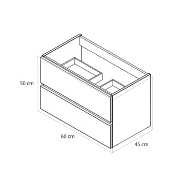 Compact en warm. Dit compacte meubel van 60 cm in licht eiken afwerking brengt een natuurlijke sfeer in je badkamer. Perfect voor kleinere ruimtes, met twee greeploze soft-close lades. De onderkast beschikt over twee houten lades die volledig uittrekbaar zijn, waardoor je altijd overzicht hebt en eenvoudig overal bij kunt. Duurzaam geproduceerd en ontworpen voor dagelijks gemak. Combineer met de bijpassende kolomkast voor een complete look.