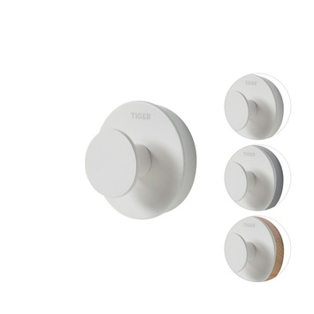 De haak groot uit de Urban serie van Tiger is uitgevoerd in de kleur mat wit en wordt geleverd met twee decorringen. De decorringen, in de kleur licht eiken en grijs, maken het mogelijk een subtiel kleuraccent toe te voegen. Het is ook mogelijk de haak zonder de decorring te monteren waardoor het zeer eenvoudig is om het product aan de gewenste stijl aan te passen. Bij de montage van het artikel wordt gebruik gemaakt van een muurplaatje waardoor de bijgeleverde bevestigingsmaterialen uit het zicht verdwijnen. De Urban serie bevat tevens een kleine haak voorzien van dubbelzijdige tape, maar ook een groot aantal aanvullende accessoires voor de badkamer en toiletruimte. Alle in dezelfde stijl. De artikelen uit de serie zijn ook in de kleur mat zwart verkrijgbaar, waarbij natuurlijk ook weer diverse decorringen worden meegeleverd.