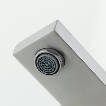 De Tiger Items fonteinkraan inox heeft een stijlvol en strak design. De kraan heeft een eenvoudige vormgeving dat voor rust in de badkamer zorgt. Het voordeel van de fonteinkraan is de waterbesparende begrenzer, dit zorgt ervoor dat de druk vanuit de kraan aangepast kan worden aan de grootte van de wastafel. De begrenzer zorgt er tevens voor dat er minder water verloren gaat. Ook heeft de fonteinkraan een anti kalk cartridge, waardoor er minder kalkvorming ontstaat. Deze kraan maakt deel uit van de Boston serie met de eenvoudige, strakke vormgeving die rust brengt in jouw badkamer. In deze zeer complete serie zijn ook meubelen, cabines, badkamer accessoires en douche accessoires verkrijgbaar.