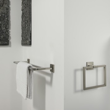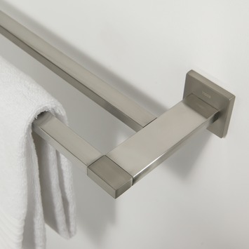 Items bewijst dat minder écht meer is. De strakke lijnen van dit moderne badkamerconcept zijn doorgevoerd tot in de vormgeving van de badkameraccessoires, zoals deze dubbele handdoekhouder uit rvs. Het is maar een van de vele accessoires om je handdoek stijlvol op te hangen.