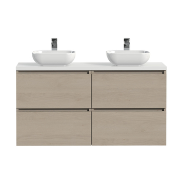 Tiger Karlo Badkamermeubelset 120 cm Naturel eik met wit houten wasblad en glanzend witte keramische waskom1.399.00
