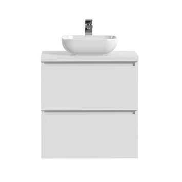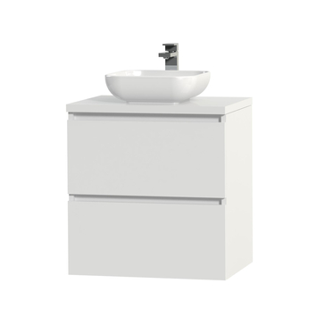 Tiger Karlo Badkamermeubelset 60 cm Hoogglans wit met wit houten wasblad en glanzend witte keramische waskom