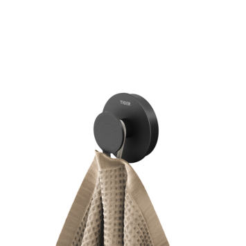 Kies en wissel gemakkelijk met de grote handdoekhaak uit de Orion serie van Tiger. Deze haak heeft een stijlvolle matzwarte afwerking en wordt geleverd met twee decoratieve ringen: één met een zwarte ribbelstructuur en één in gunmetal. Dit stelt je in staat om eenvoudig een subtiel accent aan je badkamer toe te voegen. Voor een strakke, minimalistische uitstraling kun je de haak ook zonder ring gebruiken, wat de veelzijdigheid van deze serie benadrukt.