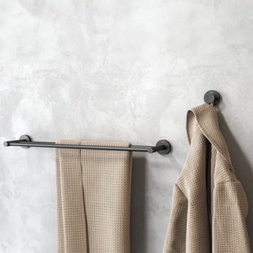 Verander moeiteloos van stijl met de dubbele handdoekhouder uit de Orion serie! Deze handdoekhouder biedt een eenvoudige manier om je badkamerlook te verfrissen. Voeg een accent toe met de bijgeleverde decorringen in zwarte ribbelstructuur of gunmetal. Met ruimte voor twee handdoeken en een meegeleverd muurplaatje dat de bevestigingsmaterialen uit het zicht houdt, blijft je badkamer er verzorgd uitzien.