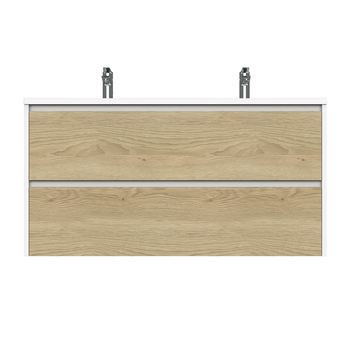 Tiger Reverse meubelset 120 cm met 2 lades naturel eik/mat wit en Quadro wastafel dubbel hoogglans wit