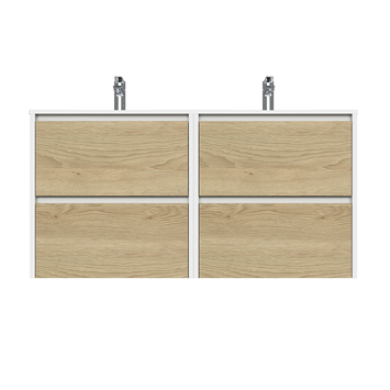 Breng karakter naar de badkamer met de nieuwe Tiger Reverse serie. Reverse is het elegante antwoord op de industriële badkamertrend. Gedurfde lijnen zorgen voor een opvallende, stoere look. De subtiele zijpanelen in wit en de afwerking in naturel eik brengen een stijlvolle sfeer naar je ruimte. Deze greeploze wastafelonderkast is een combinatie van 2 onderkasten van 60 cm en heeft in totaal 4 softclose lades. Perfect voor het opbergen van je badkamer essentials.