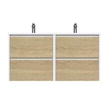 Tiger Reverse meubelset 2x 60 cm met 4 lades naturel eik/mat wit en 2 Quadro wastafels hoogglans wit1.399.00