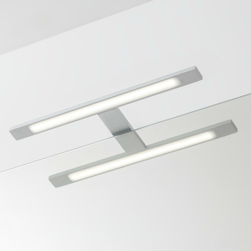 De Tiger Spiegelverlichting Ancis Chroom 40 cm is een strakke designlamp die je badkamer voorziet van luxueus licht. De Ledlamp met een lichtopbrengst van 520 Lumen voorziet je van het nodige licht bij het scheren of aanbrengen en verwijderen van make-up. De lichtkleur van 4000 Kelvin, die overeenkomt met daglicht, wordt bovendien aangeraden door visagisten. Met de energiezuinige LEDlamp die slechts een verbruik heeft van 5 Watt en een levensduur van 20.000 branduren is deze spiegellamp een zeer economische aankoop. De lamp is vocht- en corrosie bestendig en IP44 bestendig tegen spattend water boven de wastafel. Door de geïntegreerde transformator is deze spiegellamp direct aan te sluiten op het lichtnet. Monteerbaar bovenop (spiegel)kast of kolomkast.