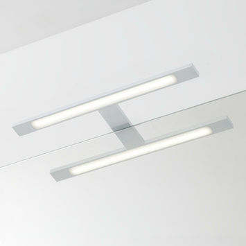 De Tiger Spiegelverlichting Ancis Wit 40 cm is een strakke designlamp die je badkamer voorziet van luxueus licht. De Ledlamp met een lichtopbrengst van 520 Lumen voorziet je van het nodige licht bij het scheren of aanbrengen en verwijderen van make-up. De lichtkleur van 4000 Kelvin, die overeenkomt met daglicht, wordt bovendien aangeraden door visagisten. Met de energiezuinige LEDlamp die slechts een verbruik heeft van 5 Watt en een levensduur van 20.000 branduren is deze spiegellamp een zeer economische aankoop. De lamp is vocht- en corrosie bestendig en IP44 bestendig tegen spattend water boven de wastafel. Door de geïntegreerde transformator is deze spiegellamp direct aan te sluiten op het lichtnet. Monteerbaar bovenop (spiegel)kast of kolomkast.