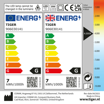 - Lichtkleur: 4000 Kelvin, daglicht