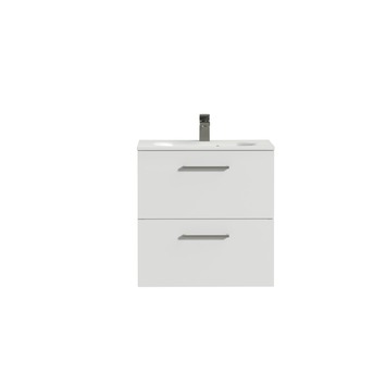 Tiger Studio badkamermeubel 60 cm hoogglans wit met wastafel polybeton mat wit greep rvs rechthoekig