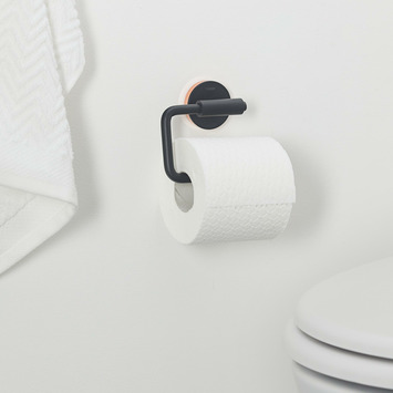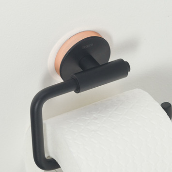De toiletrolhouder uit de Urban serie van Tiger is uitgevoerd in de kleur mat zwart en wordt geleverd met twee decorringen. De decorringen, in de kleur koper en grijs, maken het mogelijk een subtiel kleuraccent toe te voegen. Het is ook mogelijk de toiletrolhouder zonder de decorring te monteren waardoor het zeer eenvoudig is om het product aan de gewenste stijl aan te passen. Bij de montage van het artikel wordt gebruik gemaakt van een muurplaatje waardoor de bijgeleverde bevestigingsmaterialen uit het zicht verdwijnen. De Urban serie bevat tevens een toiletrolhouder met klep, maar ook een groot aantal aanvullende accessoires voor de badkamer en toiletruimte. Alle in dezelfde stijl. De artikelen uit de serie zijn ook in de kleur mat wit verkrijgbaar, waarbij natuurlijk ook weer diverse decorringen worden meegeleverd.
