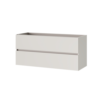 De Tiger Wastafelonderkast Condo van 120 cm in greige is perfect voor wie zoekt naar een praktische en stijlvolle oplossing voor de badkamer. Met greeploze lades biedt deze kast niet alleen een strakke uitstraling, maar ook voldoende opbergruimte voor al je toiletartikelen. De twee ruime lades zijn van hoogwaardige kwaliteit en sluiten geruisloos dankzij het soft-close systeem. Dit zorgt ervoor dat je nooit meer last hebt van dichtslaande lades. Bovendien is de kast geproduceerd in Europa en gemaakt van gecertificeerd hout, wat bijdraagt aan de kwaliteit. Met een tijdloos design dat bij elke stijl past, is deze wastafelonderkast een must-have. Maak je badkamer compleet door de bijpassende kolomkast toe te voegen.