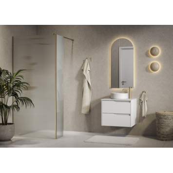 Met de Tiger Nook wastafelonderkast geef je je badkamer een frisse uitstraling. Deze kast van 60 cm breed is perfect voor kleinere ruimtes, en biedt dankzij de twee ruime lades voldoende opbergruimte voor al je toiletartikelen. De lades sluiten geruisloos dankzij het softclose-systeem, wat zorgt voor extra gebruiksgemak. Het moderne, greeploze design met een verfijnd ribbelpatroon maakt het geheel niet alleen functioneel, maar ook aantrekkelijk. Geproduceerd in Europa met hoogwaardige materialen, biedt deze kast een betrouwbare oplossing voor je badkamer. Of je nu kiest voor een Scandinavische of minimalistische stijl, deze wastafelonderkast past perfect. Maak je badkamer compleet en ontdek de mogelijkheden van de Tiger Nook wastafelonderkast.