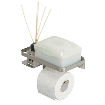 Je zit in één keer goed met deze unieke Tiger Caddy toiletrolhouder met planchet. Deze alles-in-1 toiletoplossing biedt ruimte voor geurstokjes, je mobiele telefoon, vochtig toiletpapier of zelfs een opbergdoosje voor hygiëne producten voor dames. Hij is de Houdini onder de badkameraccessoires, maar met de nieuwe Caddy is een opgeruimde badkamer geen illusie. Breng ook het tijdloze gevoel naar jouw badkamer met deze RVS variant.